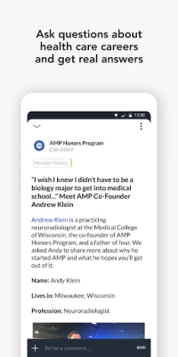 + A welcoming community of students and experts who have similar passions about medicine and other healthcare fields