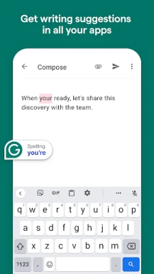 Grammarly works with any Android keyboard, such as Gboard or SwiftKey, so you’ll never have to switch keyboards when you need help writing that important email, text, or social post.