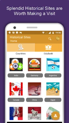 Learn from historical sites that portray ancient rich culture and heritage. People without the knowledge of their past history, origin and culture is like a tree without roots - said Marcus Garvey. Historical Sites Travel & Explore is an app that gives you knowledge about Historical Sites around the world. The app gives you details about categories of Historical Sites under it, if any. The app provides information about various ancient, architectural Historical Sites, both country wise and city wise. You can sort the Historical Sites based on popularity and alphabetically.