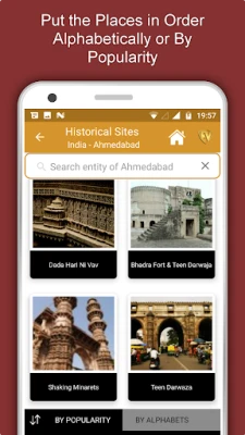 * Search - Perform a quick search in the search box to know the famous Historical Sites quickly!