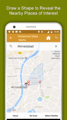 * Nearby or Map feature - It has 3 options- Draw Shape, Select Marker and Reset. You can choose accordingly.
