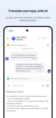 - Reply with AI: Draft smarter replies to customers using AI Assist and overcome language barriers with real-time conversation translation.