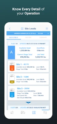 Well Site Monitoring – Keep track of sand levels and throughput within of Solaris Mobile Proppant Management Systems.