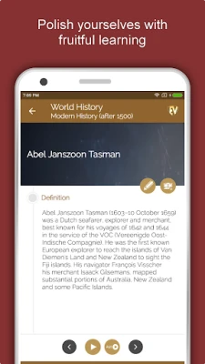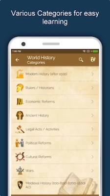 This Offline World History App will introduce you to historical rulers, civil wars like American Civil War, major revolutions like French revolution, important Historical Events, World War, Greek and Indian History etc. This World History Dictionary App gives you an opportunity to test your learning with its series of History Quiz.