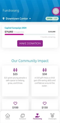 Get involved: View organization fundraising campaigns and community impact content and join challenges to stay motivated.